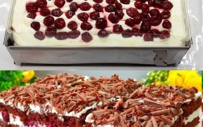 Składniki 2 łyżki kakao 1 słoik (720 ml) wiśni 800 g śmietanki kremówki 2 opakowania stabilizatora śmietany 150 g wiórków…